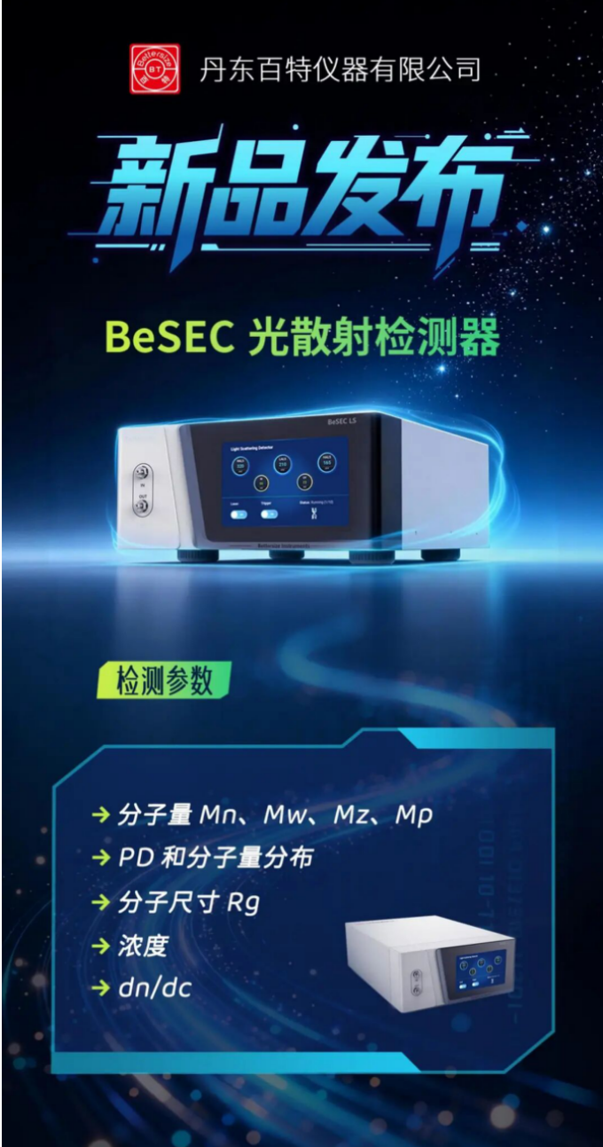 丹东百特仪器有限公司重磅推出BeSEC光散射检测器,新品耀世登场!它可无缝联接各类凝胶渗透色谱系统,通过精准检测散射光信号,直接测定绝对分子量(Mn/Mw/Mz)...