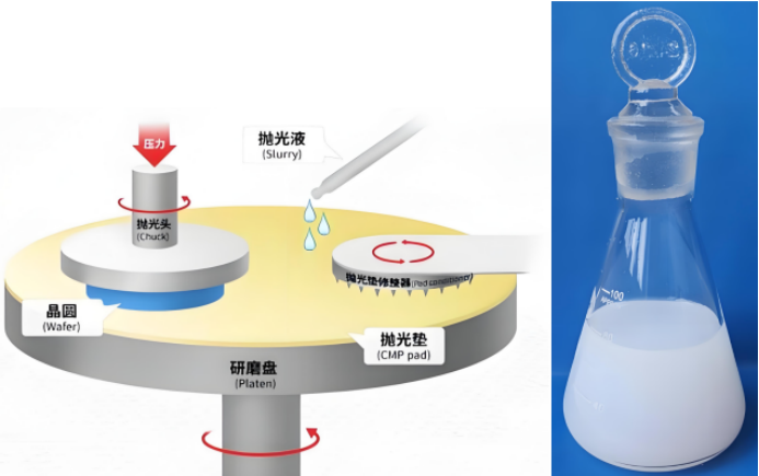 CMP抛光液与抛光垫和固定环结合使用,以平整表面不规则的形貌,使晶圆表面光滑(图1),光滑的表面是后期形成集成电路的必要条件。晶片的平整度非常重要,与所用抛光浆料颗粒的尺寸分布有关。抛光液中颗粒的尺寸和分布会影响抛光速率和抛光表面粗糙度,从而影响稍后加工的电路质量,尤其是微量存在的大颗粒团聚物,有可能对...