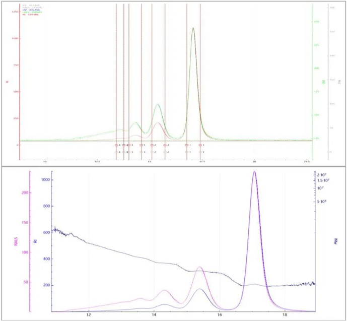 前端凝胶色谱中使用了市场中某主流品牌SEC,具有RI检测器,使用TSK氧化硅柱进行分离。