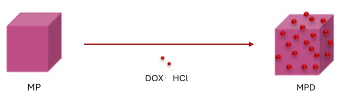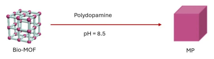 该研究通过溶剂热法合成Bio-MOF:Zn(OAc)2·2H2O与姜黄素(Cur)在乙醇和N,N′-二甲基乙酰胺混合溶液中溶解后,于120℃反应48小时,所得固体经DMF洗涤并真空干燥。随后通过多巴胺包覆形成MP,再以透明质酸(HA)修饰得到MPH,最后将阿霉素(DOX)负载于多巴胺包覆结构中,并经HA包覆制得MPDH粒子。
