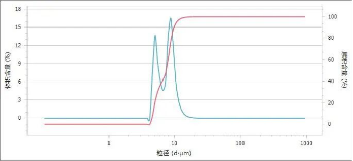 图2. 5μm+10μm样品沉降法信号(上图)和沉降法粒度分布(下图)
