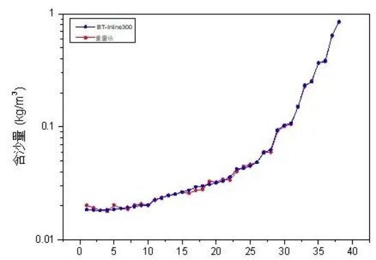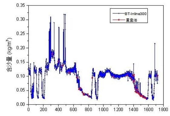 图5.重量法与 BT-Inline300 测量结果对比(第二个站点)