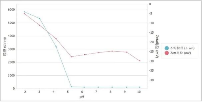 图2. Zeta电位和粒径对于pH的依赖性曲线