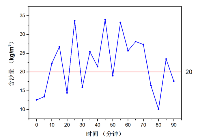 BT-Inline300成功追踪了监测期间悬移质泥沙含量与颗粒级配的变化。如图2所示,悬移质泥沙含量出现了显著波动,多次超过20kg/m3的阈值。峰值浓度约达33–35kg/m3,显示出短时强烈的泥沙输移过程,这种现象通常与流量突变相关。