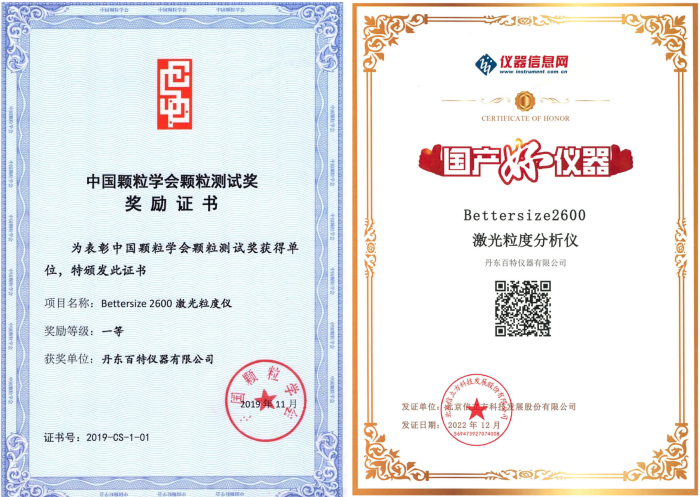 在粒度检测领域,百特激光粒度仪Bettersize2600已投放市场十余年,产销量超过5000台,累计创造产值超5亿元,不仅是中国粒度检测领域的著名机型,还出口到美国、德国、韩国、巴西、俄罗斯等90多个国家,它凝聚了百特15项核心专利技术,荣获辽宁省科技进步奖等10余项政府及行业大奖,经中国颗粒学会组织的专家鉴定,性能达到国际同类仪器先进水平。