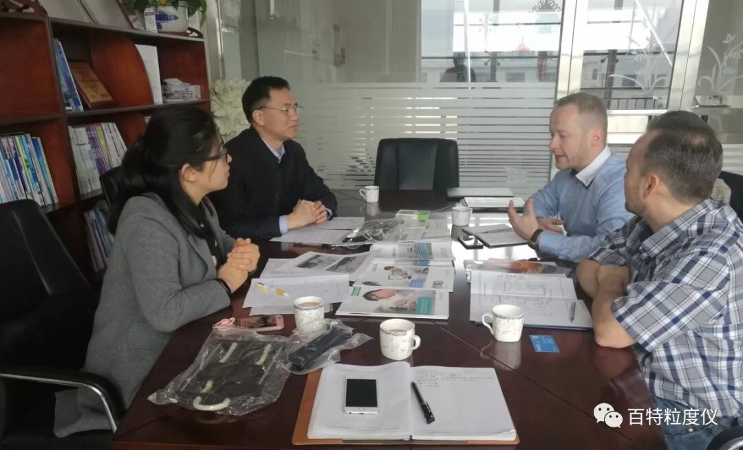 展览会刚刚结束,百特德国代理商Quantachrome公司的销售经理Dr.Frederik Schleife先生和服务工程师Peter Macht先生再次来访丹东百特,双方讨论了前一段时间里对仪器研究、人员培训、市场开发的成果。百特总经理董青云与客人进行了商务交流,百特研发总监范继来、国际市场经理孙霖和于雅楠与客人进行了技术交流。通过交流德国客人对百特仪器有了更深入的了解,百特从德国代理那里体会到了德国同行的专业认真、严谨细致的工作作风。