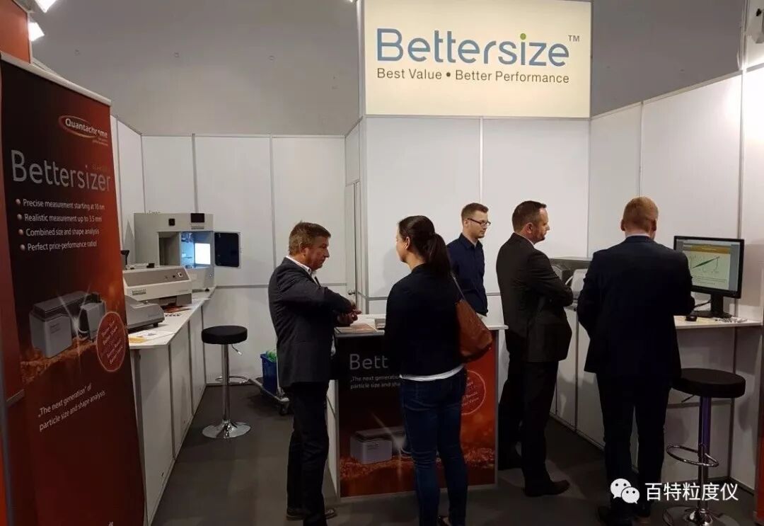 在两个展会上,客户对百特展出的高精密产品Bettersize 3000Plus(出口型号 :Bettersizer S3Plus)双镜头斜入射激光粒度散射测试系统+双镜头显微图像粒形分析系统倍感兴趣,看到了粒度测量范围0.01-3500μm,重复性误差小于0.5%;粒形分析项目有圆形度、长径比、凸起度等。同时还看到了一键操作技术、折射率测量技术、样品复配技术、超声波防干烧技术等。围绕着展台边看边问,百特德国代理一面演示,一面解答问题。看完演示,听完解答,好奇变成了认可,大家认为这是一款来自中国技术先进的粒度粒形分析仪器。